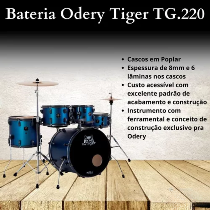 Bateria Odery The Tiger Chameleon TG220 – Completa com Ferragens, Pratos e Banco