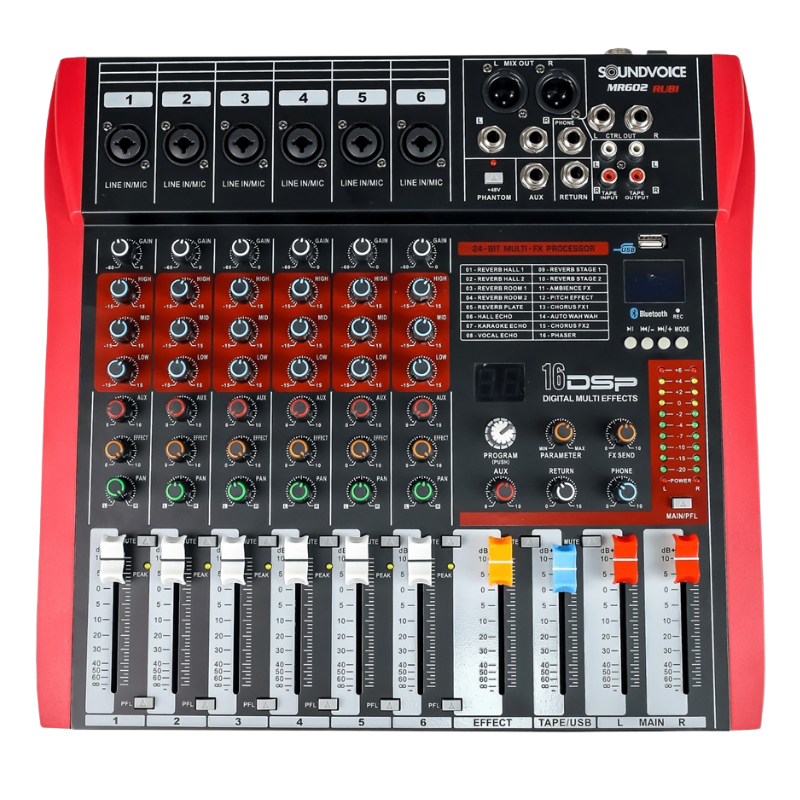 A Mesa de Som Soundvoice MR-602 Rubi é uma excelente escolha para quem busca qualidade de som, portabilidade e versatilidade em um único equipamento. Ideal para gravações, ensaios, shows e transmissões ao vivo.