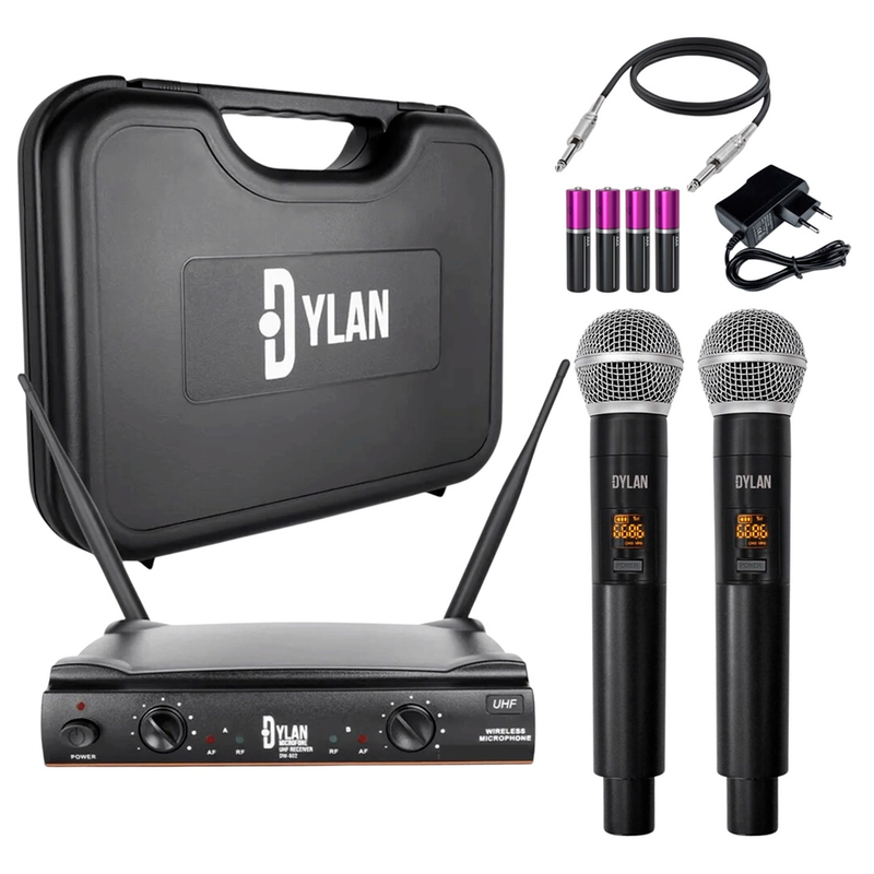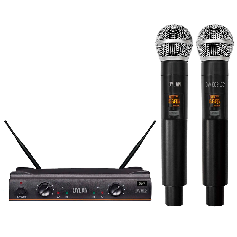 Microfone Sem Fio Duplo Dylan DW-602 Max — UHF, 26 Canais, Display Digital e Alta Durabilidade