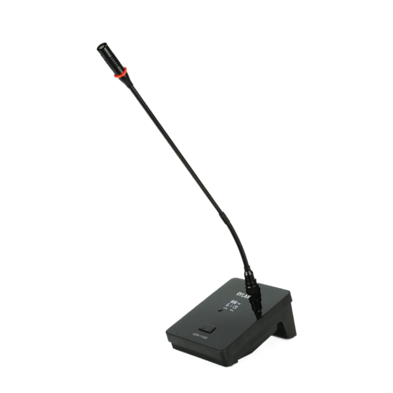 - Transmissor Gooseneck: Microfone de mesa flexível e ajustável