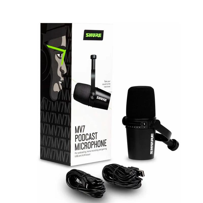 Inspirado no design do microfone SM7B, o MV7 é um microfone dinâmico para podcast com saídas USB e XLR. Ou seja, é um microfone híbrido, com ele você tem a combinação perfeita dos mundos analógico e digital.