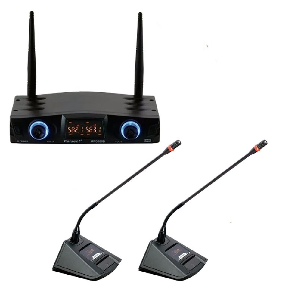 O Microfone Sem Fio Duplo Gooseneck Karsect KRD200DG é a escolha ideal para apresentações, conferências e reuniões profissionais que exigem clareza e praticidade. Com tecnologia UHF e design gooseneck, ele proporciona captação precisa e uma excelente qualidade de áudio, eliminando ruídos e interferências.