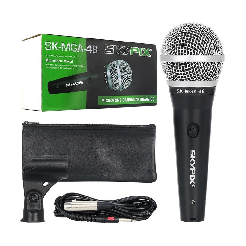 O Microfone Skypix SK-M58 é um microfone dinâmico com cabo que oferece excelente desempenho para vocais e gravações ao vivo. Desenvolvido para atender às necessidades de profissionais da música, ele proporciona uma captação clara e precisa da voz, sendo ideal para apresentações em palco e gravações em estúdios. Com uma construção robusta, o SK-M58 é altamente resistente e projetado para suportar o uso intenso em condições variadas, garantindo qualidade superior em cada performance.