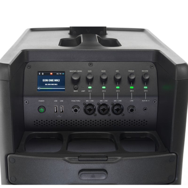 O JBL EON ONE MK2 é um sistema de som portátil completo que combina a potência de um sistema PA com a mobilidade de um equipamento sem fio. Com bateria recarregável de longa duração, mixer digital de 5 canais, Bluetooth 5.0 e a lendária qualidade de áudio JBL, ele é a escolha perfeita para músicos, DJs, igrejas, eventos corporativos, palestrantes e apresentações ao ar livre.