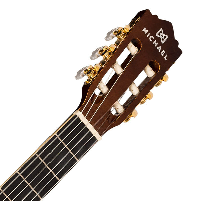 O Violão Michael VM15NY Natural é um instrumento de alta qualidade que se destaca por sua construção robusta e som envolvente. Possui tampo, lateral e fundo em Linden, proporcionando um timbre equilibrado e agradável. Com cordas de nylon, oferece maciez ao toque, ideal para quem está começando. Seu design clássico natural exibe um acabamento refinado, unindo beleza e funcionalidade.