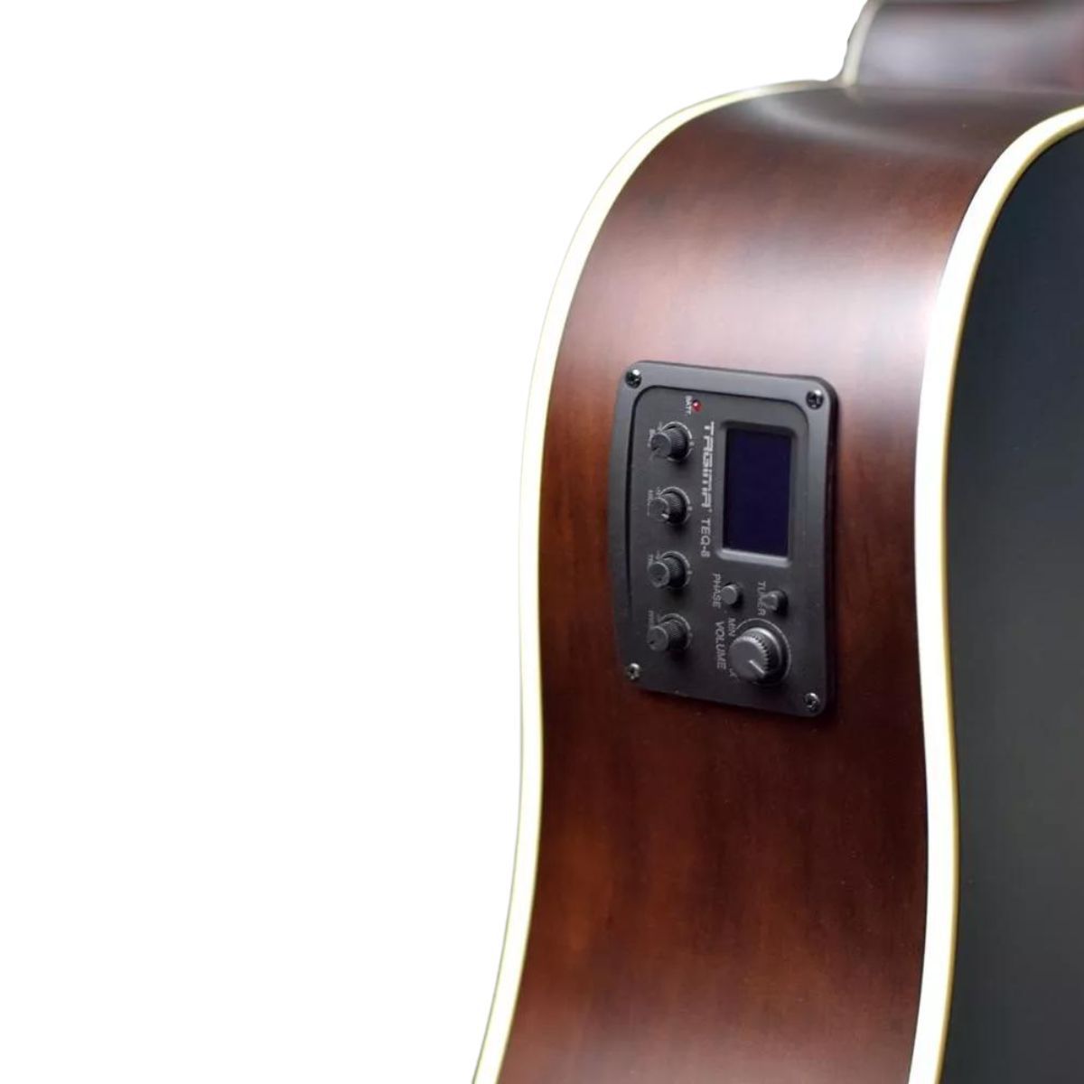 - Design: Corpo folk com cutaway, facilitando o acesso às notas mais altas, perfeito para solos e acordes complexos.