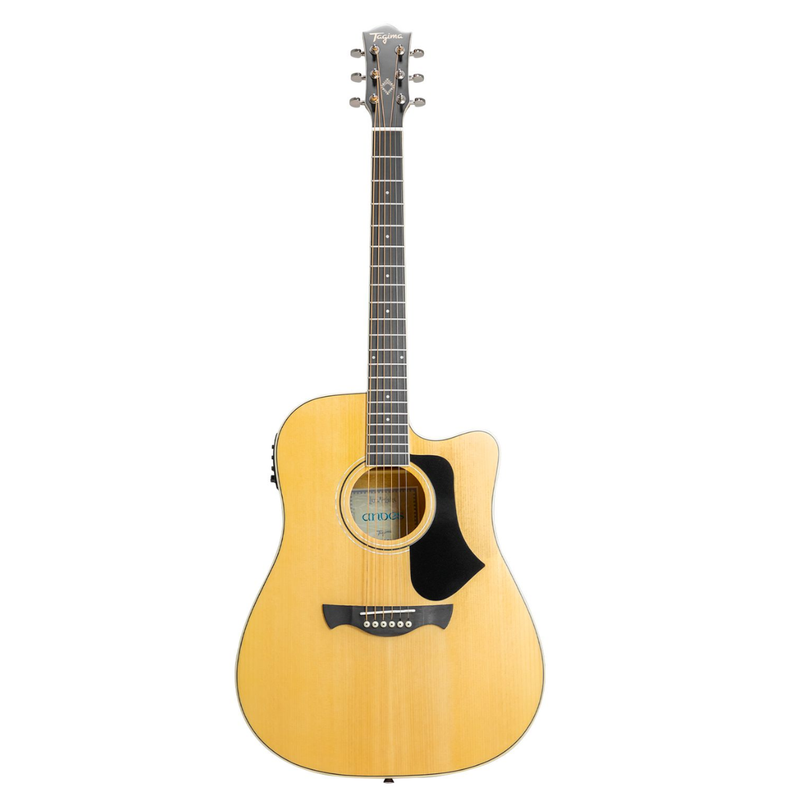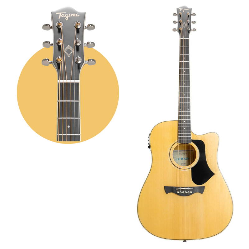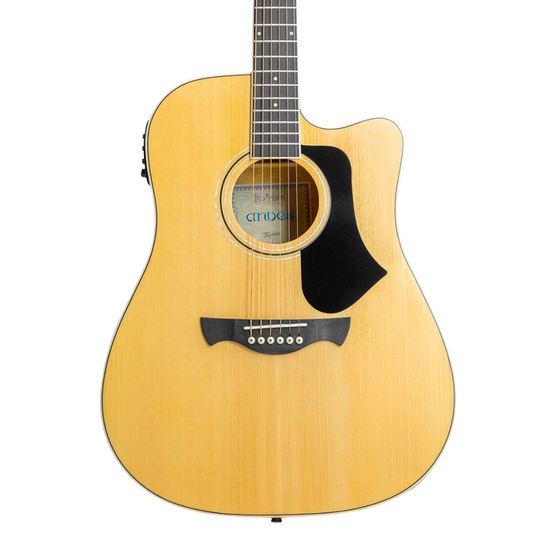 Ele possui corpo no estilo Folk Dreadnought com Cutaway, que facilita o acesso aos trastes mais altos. Seu tampo é de spruce, enquanto laterais e fundo são em agathis, promovendo um som com equilíbrio entre clareza e calor. O braço é em Okoume, com perfil “C”, para conforto no manuseio. Na parte elétrica, traz captação Piezo + equalizador TEQ-8, permitindo ajuste de graves, médios, agudos e presença para moldar o som conforme o ambiente.