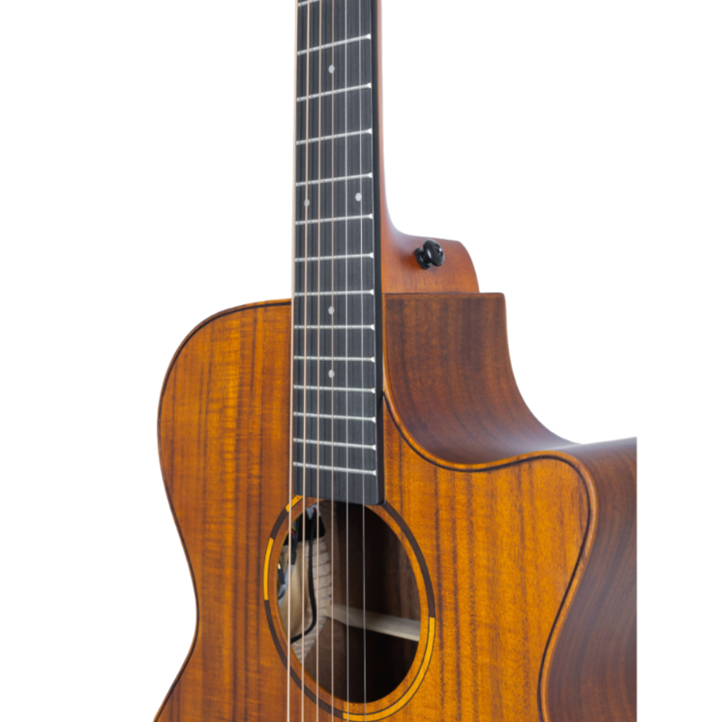✅ Madeira de Koa no tampo, laterais e fundo, proporcionando timbre equilibrado e brilhante