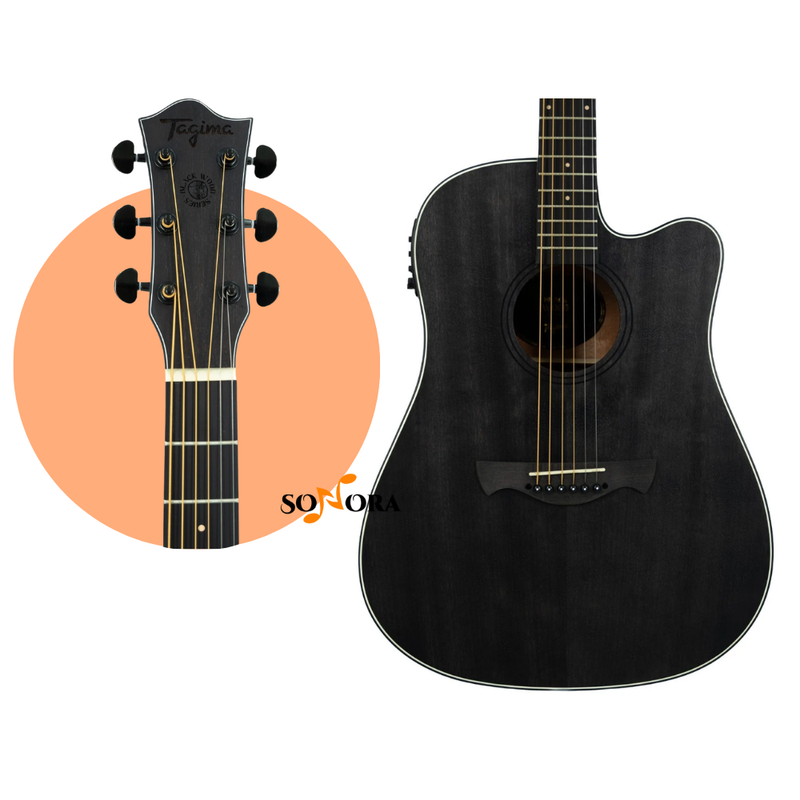 Violão Tagima TBW-200 BK – Black Wood Series, Folk Dreadnought Cutaway com EQ Ativo